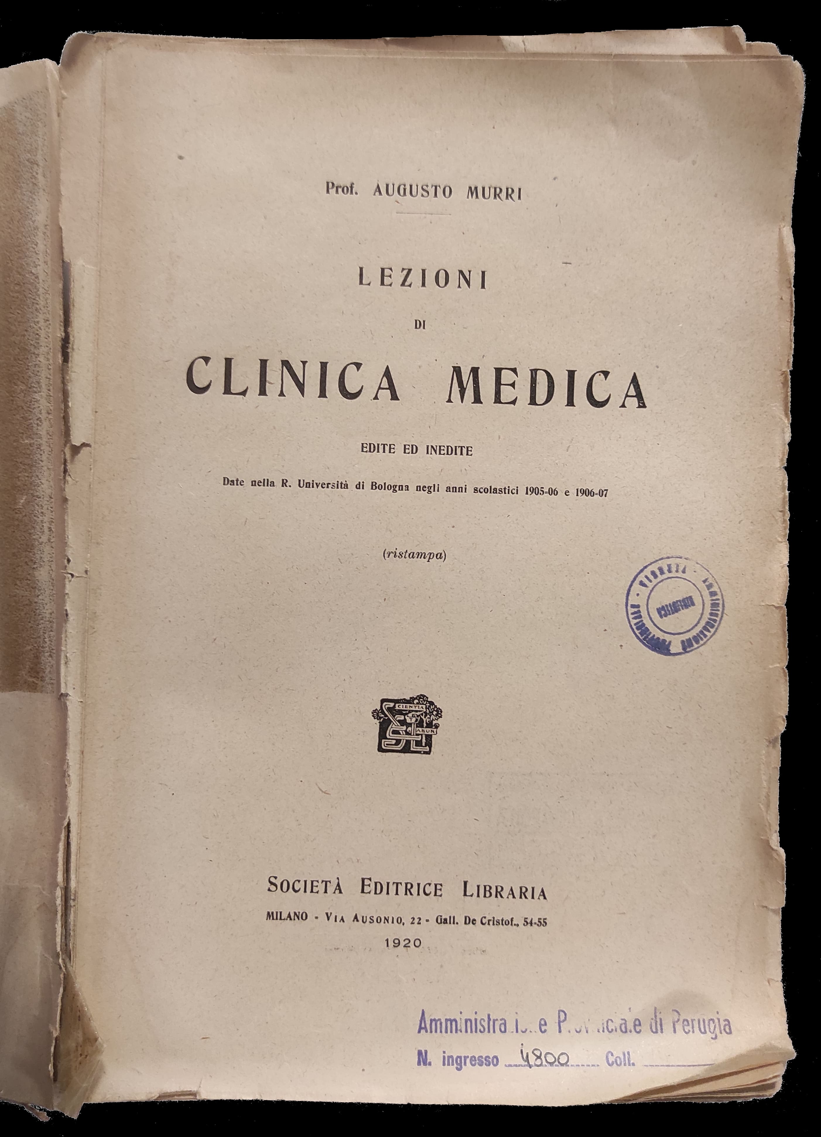 ![Frontespizio [A. Murri, Lezioni di clinica medica edite ed inedite, Milano, Società Editrice Libraria, 1920. Biblioteca Biomedica] Frontespizio [A. Murri, Lezioni di clinica medica edite ed inedite, Milano, Società Editrice Libraria, 1920. Biblioteca Biomedica]](getImage.php?id=92&w=290&h=403&c=0&co=1&f=0&t=0&.jpg)